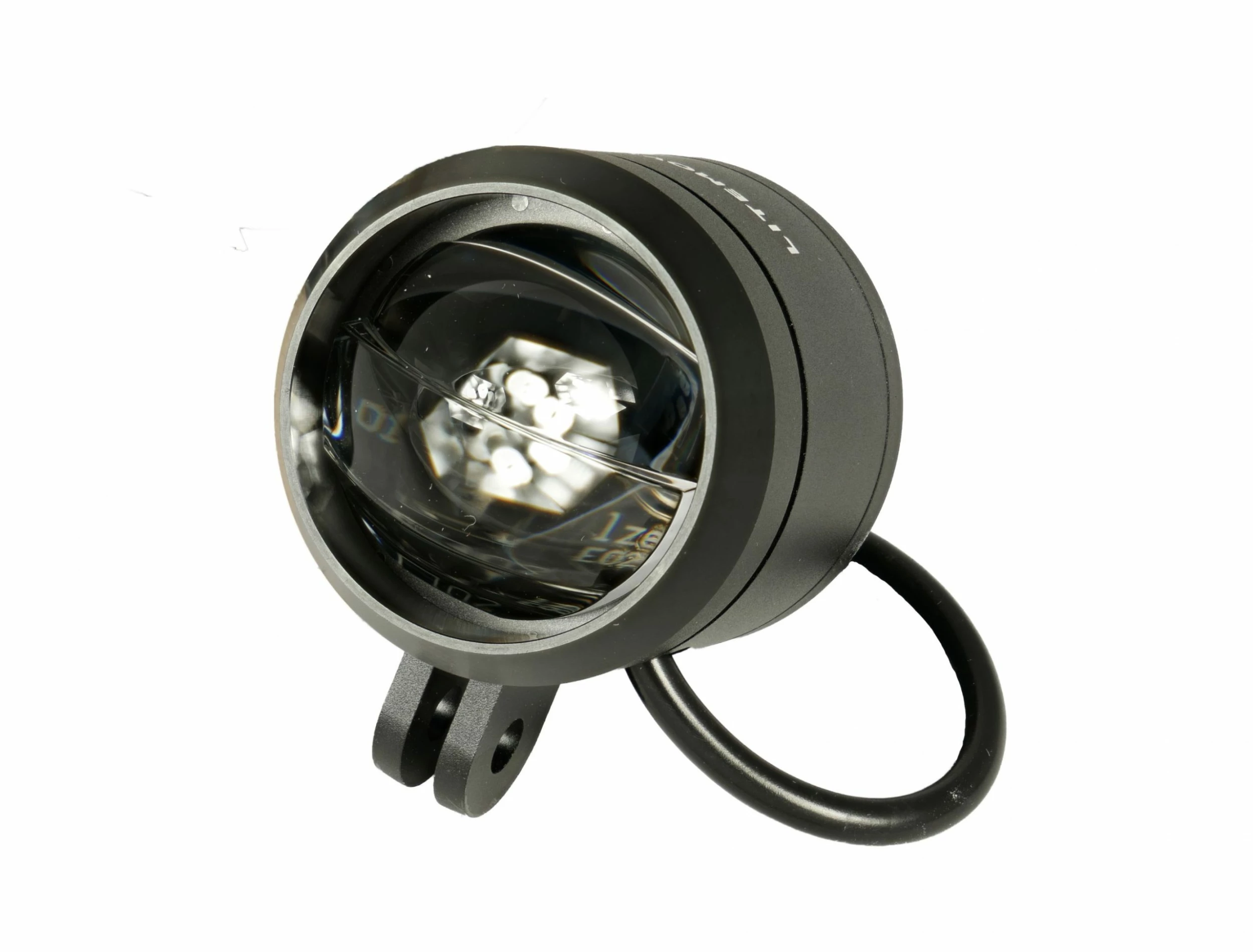 Quelle que soit l’obscurité de l’environnement en ville, en montagne ou sur les sentiers, le phare vélo Litemove SE-150 vous offre un éclairage optimal avec son faisceau large de 7 mètres et sa visibilité à 70 m. Cet éclairage avant dispose d’un boîtier robuste en aluminium fraisé CNC, il se connecte sur le moteur de votre VAE et se contrôle depuis votre ordinateur de bord.