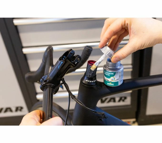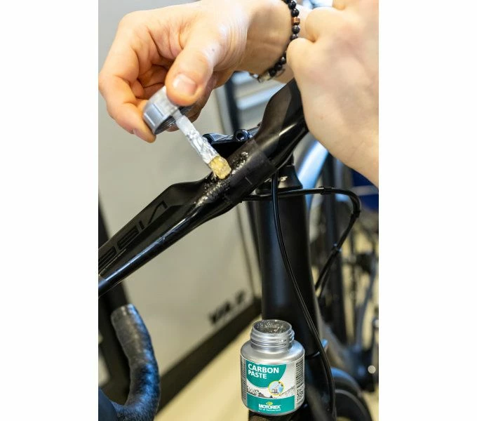 Les pièces en carbone pouvant être endommagées par un serrage excessif, l’utilisation de la pâte de montage Motorex est recommandée pour augmenter le frottement, et ainsi diminuer le serrage des pièces.