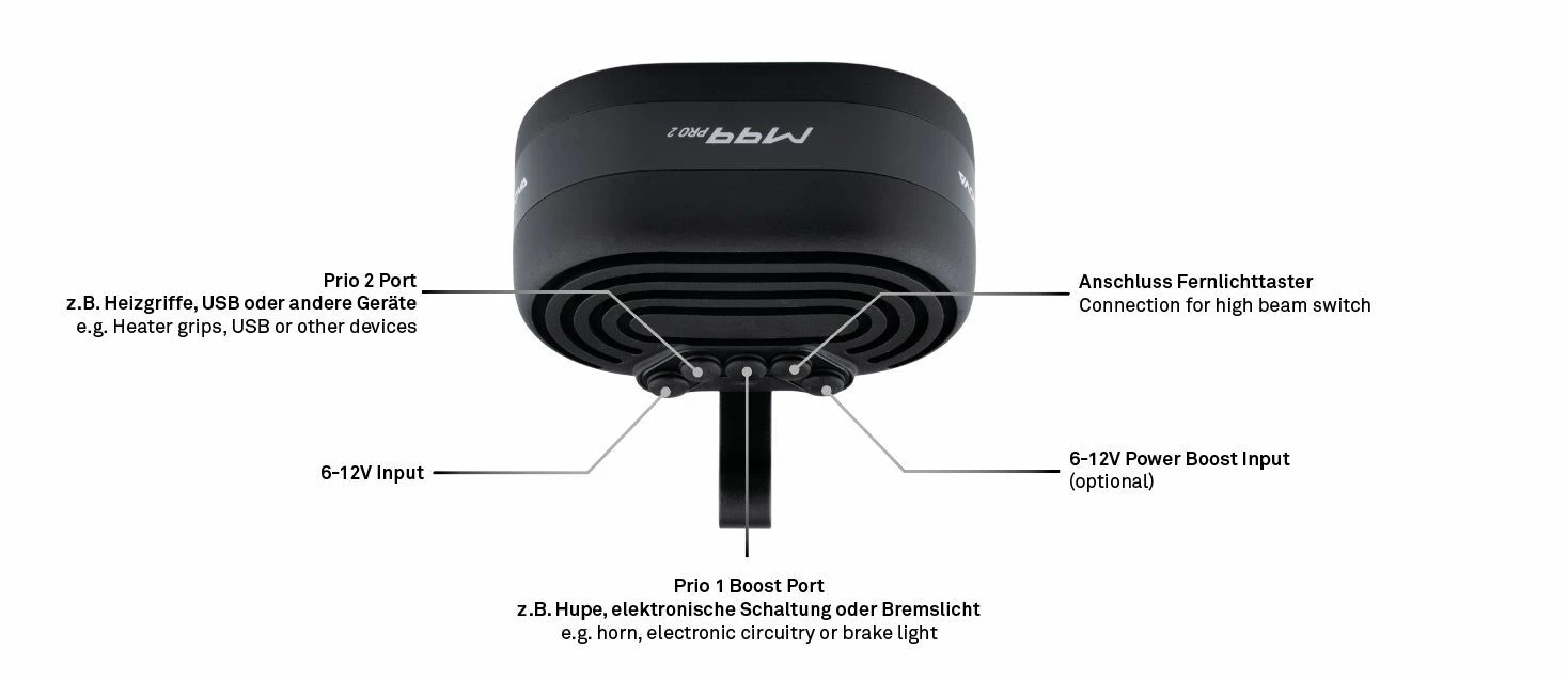 Ce phare possède un accumulateur d’énergie intégré qui permet de gérer les composants à forte consommation d’énergie à court terme (par ex. circuit électrique, klaxon ou feu stop) et de les faire fonctionner avec une puissance de pointe allant jusqu’à 30 W. Le phare Supernova M99 PRO 2 dispose ainsi de beaucoup plus de puissance pour l’éclairage, car il n’est pas nécessaire de réserver de la puissance pour d’autres composants utilisés très brièvement.